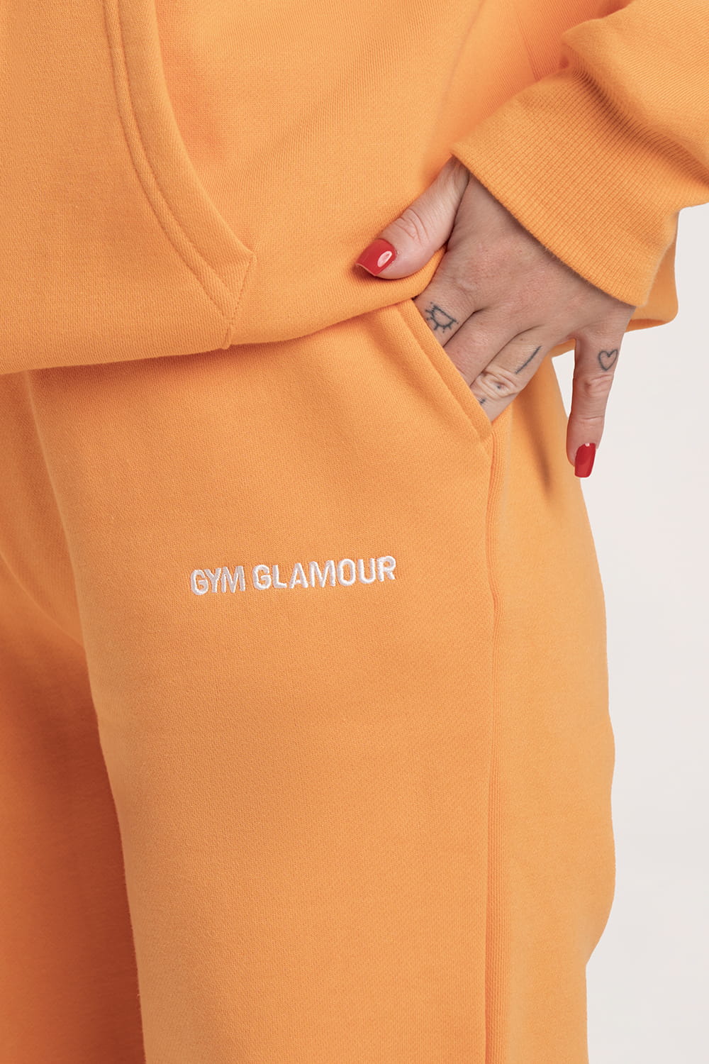 - Панталоните имат два практични джоба и бяло бродирано лого на Gym Glamour.
