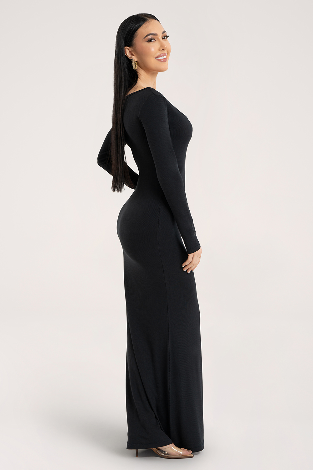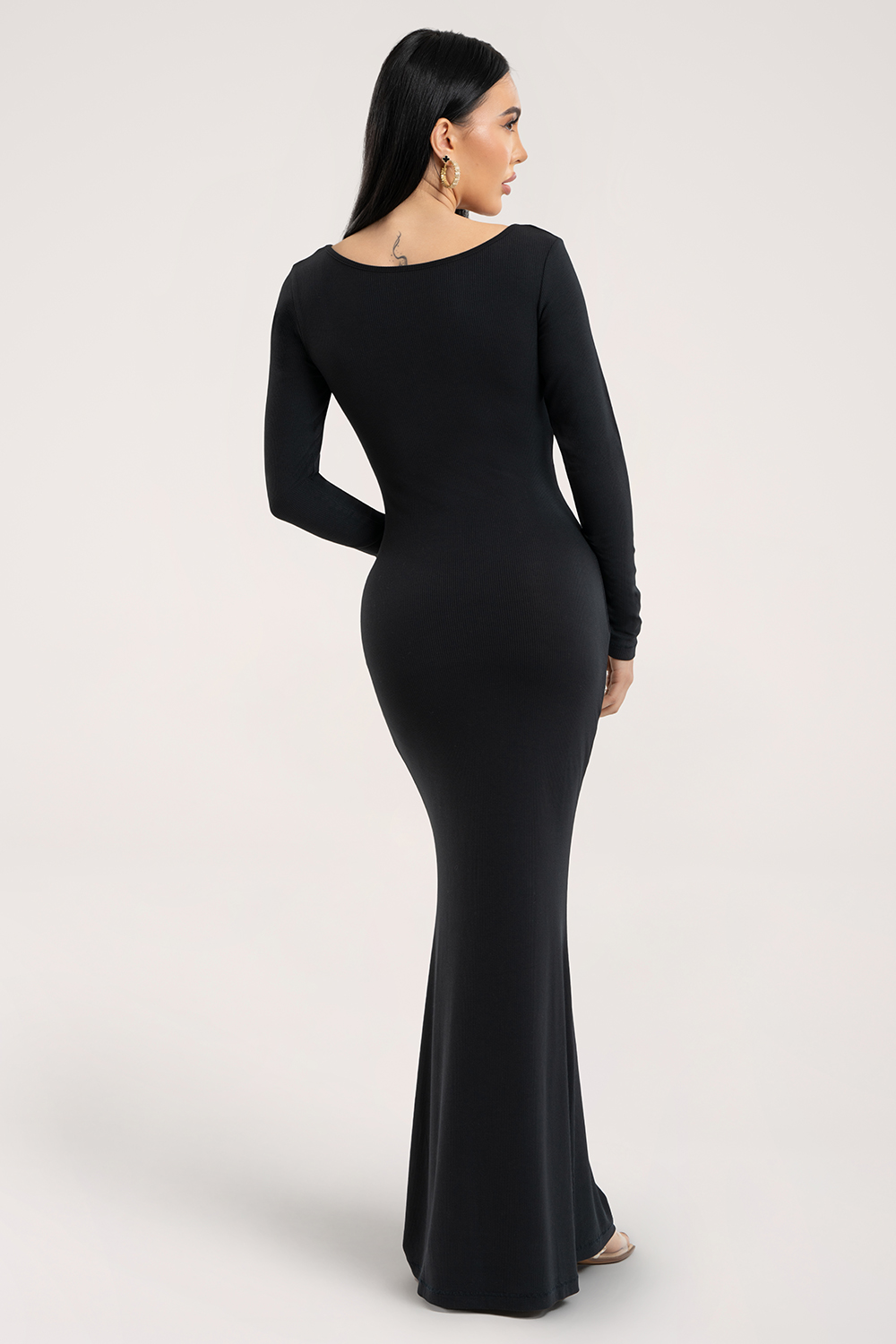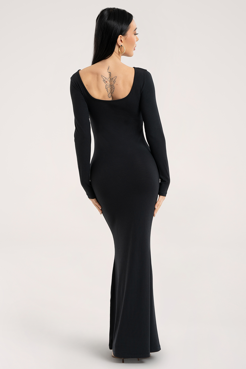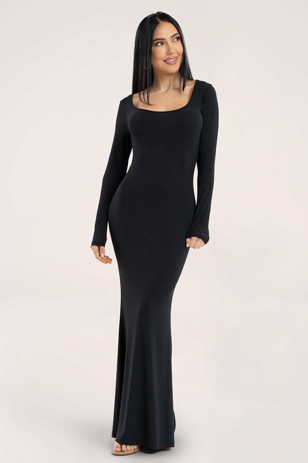 Роклята Flexi прилепва перфектно към тялото, създавайки силует тип пясъчен часовник. Перфектно подчертава талията и бедрата, а финото стесняване около коленете визуално издължава фигурата и подчертава нейните изящни извивки. Роклята приляга по тялото като втора кожа – без усещане за стягане или дискомфорт.