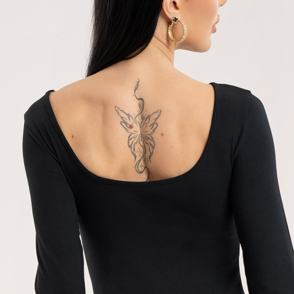 Двустранна кройка Деколтето може да се носи двустранно – отпред или отзад, според стила.