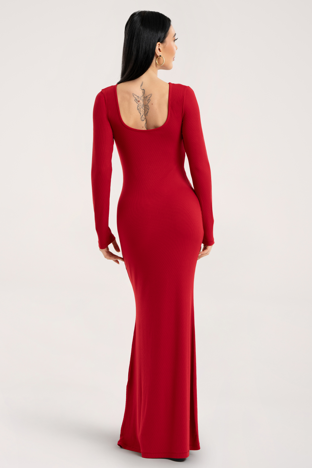 Роклята Flexi прилепва перфектно към тялото, създавайки силует тип пясъчен часовник. Перфектно подчертава талията и бедрата, а финото стесняване около коленете визуално издължава фигурата и подчертава нейните изящни извивки. Роклята приляга по тялото като втора кожа – без усещане за стягане или дискомфорт.