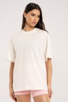 - Tričko oversize, delšího střihu s jemně sníženou linií ramen